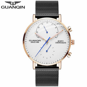 GUANQIN Mens Watches Top Brand Luxury Chronograph Watch Men Business Casual Creative Mesh Quartz Bracelet men's watch